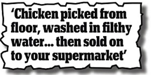 “Frango recolhido do chão, lavado em água inapropriada… depois vendido para o seu supermercado”. Manchete do jornal britânico sobre falta de higiene em fábrica da 2 Sisters na Inglaterra