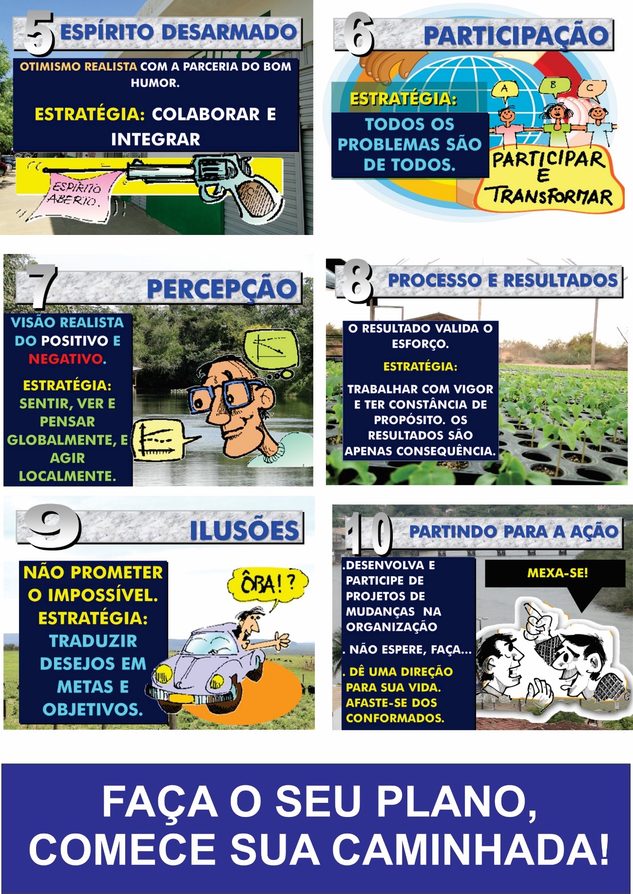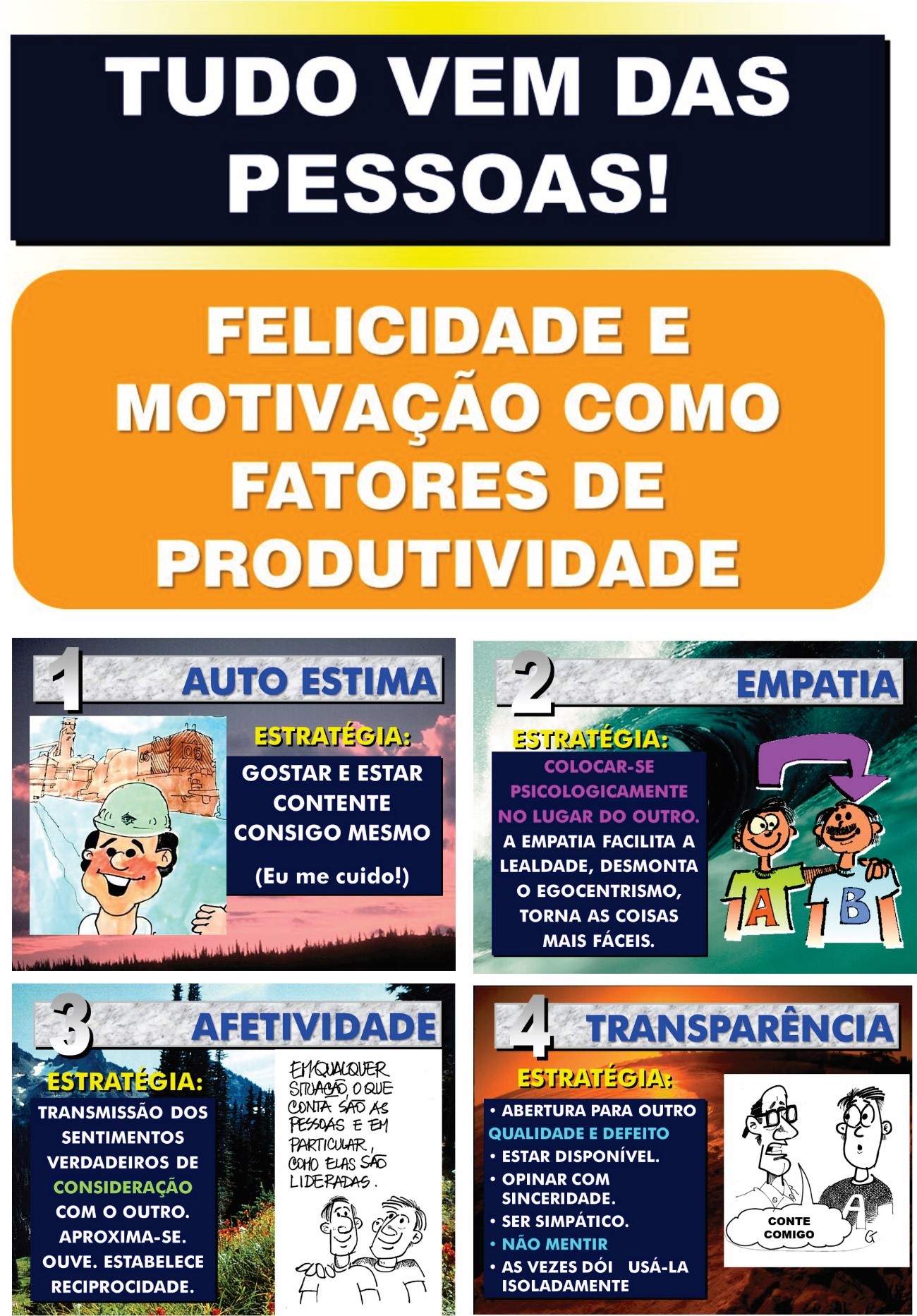 Completamos os 10 fatores fundamentais que irão contribuir para o Sucesso e Motivação de cada ser humano e que, por sua vez, irão contribuir para o atingimento de seus resultados pessoais e também da organização – Destaque para o ponto 10, onde a mensagem solicita uma ação do tipo, “saia do sofá e coloque suas ideias em prática”, vamos mudar e melhorar (Kaizen) o que precisa ser melhorado.