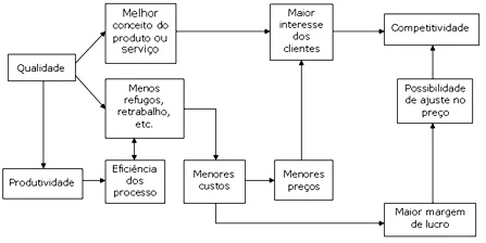 Enfim, a qualidade de processos e produtos (bens tangíveis ou serviços), juntamente com sua contraparte de produtividade, são elementos básicos para a competitividade das empresas. Ao par disso, para se conseguir melhorias significativas na qualidade dos produtos e processos, a busca permanente por inovações, baseadas ou não no aporte de novas tecnologias, tem um papel de destaque. As empresas e organizações que atuem num mercado altamente globalizado e informatizado, como o dos tempos que correm, não podem ficar alheias a essas realidades, sob pena de não obterem a competitividade em face da concorrência, que pode estar em qualquer ponto do globo, e não cumprirem a finalidade social que se espera da sua atuação.