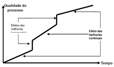 Outra forma de se conseguirem melhorias incrementais é mediante o aporte de inovações tecnológicas. A Figura 2 comprara o efeito proporcionado pelas melhorias contínuas e incrementais.