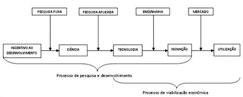 A Figura 4 situa a inovação tecnológica em um processo de viabilização de novos produtos, sejam eles bens tangíveis ou serviços, mostrando o encadeamento que deve existir para que esse processo seja sólido e sustentável.
